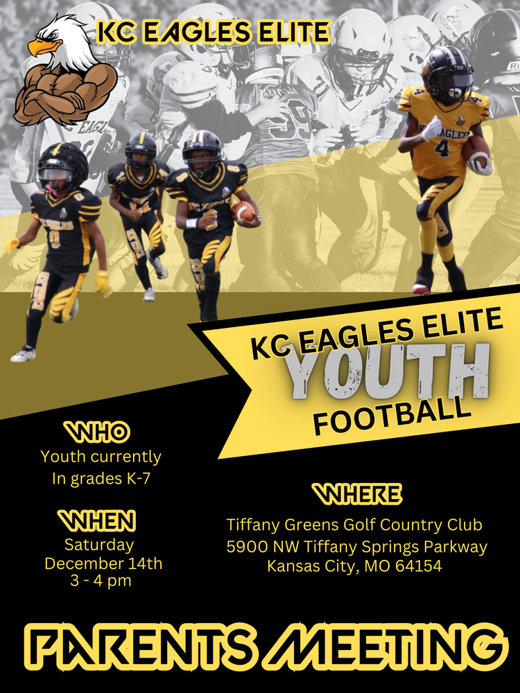 Come learn more about the KC Eagles Elite Youth Football program at our Parents Meeting!